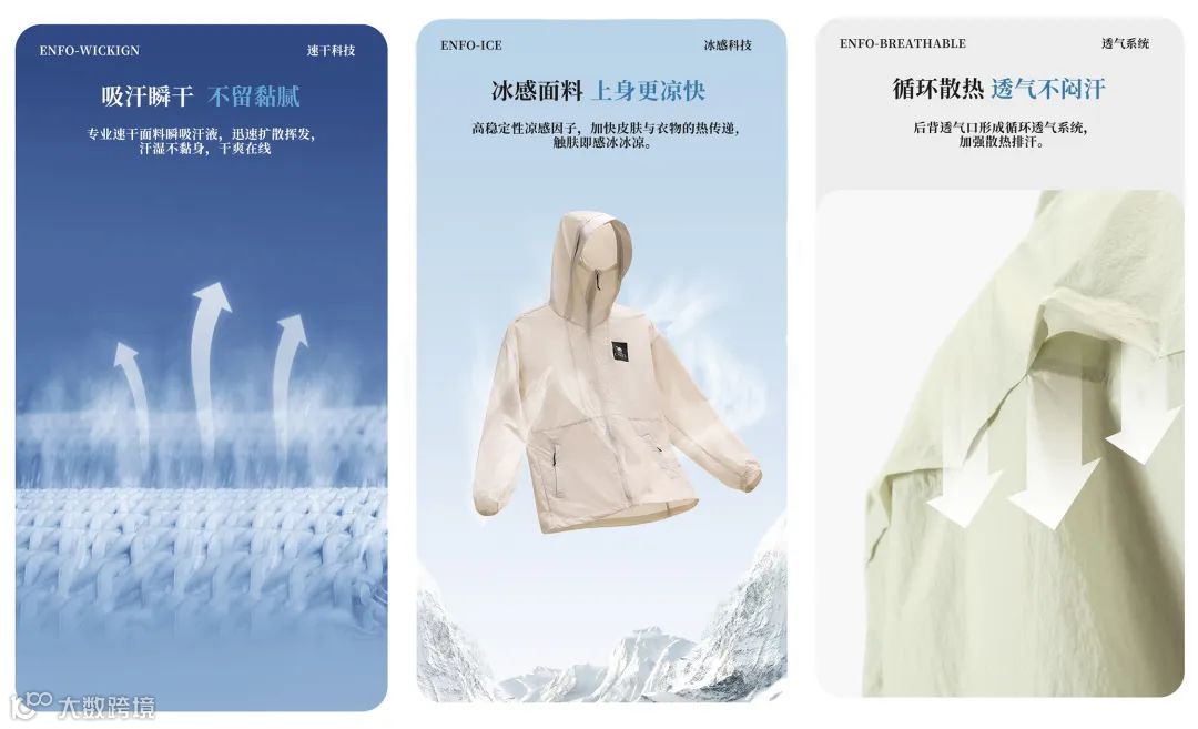 因此在防晒衣这样的相邻垂类上,骆驼自然可以把其他户外品类最前沿的专业科技取其精华进行复用。