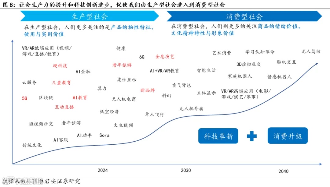 我们认为,情绪价值对消费品企业的重要性日益突出,随着社会生产力的提升与科技的进步,人类创造出大量的物质财富,商品和服务的数量不断增多,出现了物质的极大丰富甚至过剩。