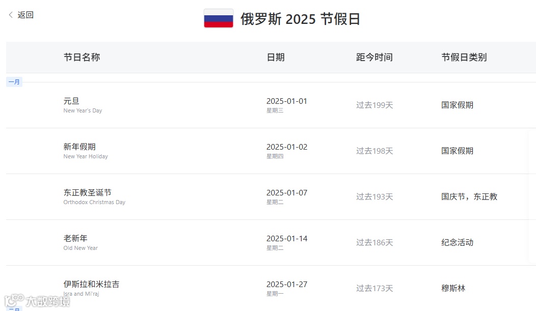 深入理解俄罗斯法定节假日及其文化内核,是跨境电商掘金该市场不可或缺的功课。大数跨境全球节假日查询工具,为卖家提供高效、准确的俄罗斯及全球市场节日信息查询服务,是科学规划、规避风险、提升效率的实用助手。