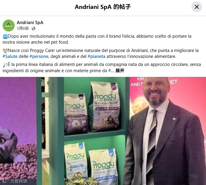 意大利健康食品巨头Andriani进军宠物食品领域 推出植物基品牌Proggy Care