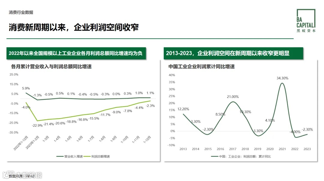 我们深刻地感受到:2022年以来,消费走进了新周期,这个新周期的显著特征是企业利润空间的收窄。我们可以在本章看几组详细数据,更重要的是理解新周期背后的结构性问题,这能帮助我们更深刻地认识消费者的质价比追求。