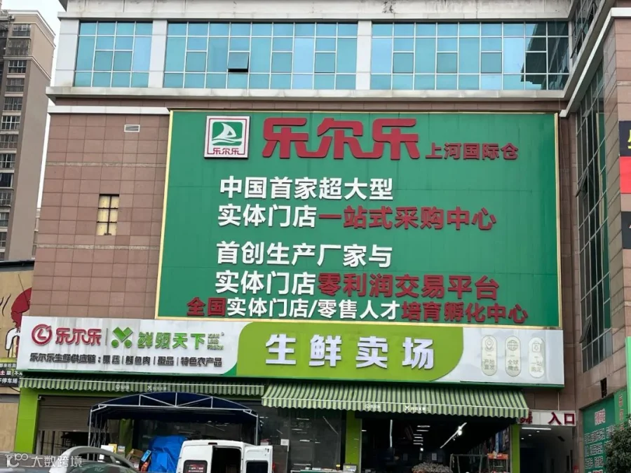 再专访之前,我们去了位于总部的乐尔乐上河国际仓店,进行了实探,绿色的大门头上“中国首家超大型实体门店一站式采购中心”、“首创生产厂家与实体门店零利润交易平台”、“全国实体零售门店/零售人才培育孵化中心”等显眼的字样贴在大型绿色门头之上。
