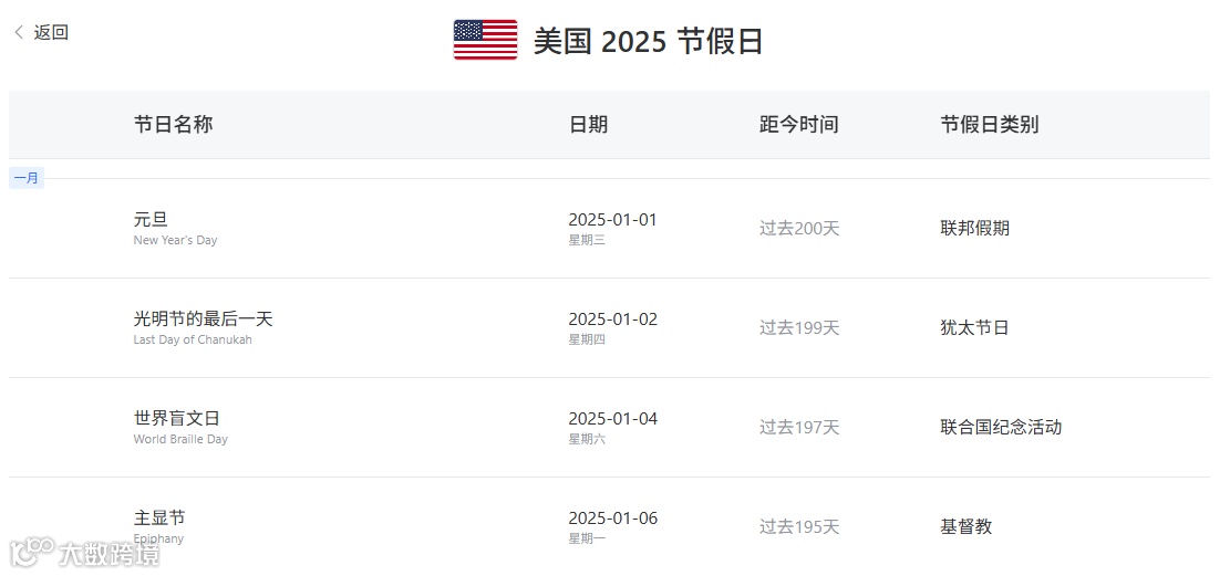大数跨境节日查询工具覆盖全球200+国家地区的法定节假日、传统节庆及重要购物季数据。