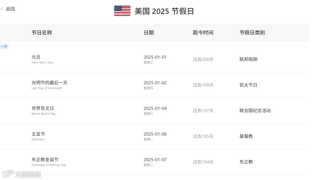大数跨境全球节假日查询工具覆盖200多个国家和地区,尤其对美国联邦及各州节日实现深度收录。从独立日的烟花庆典到加州的牛油果节,从节日时间、文化背景到消费趋势数据。
