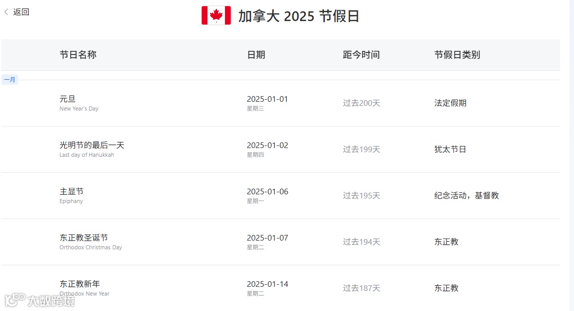 大数跨境世界节日查询工具,助您一键掌握加拿大全年营销日历,科学排兵布阵。
