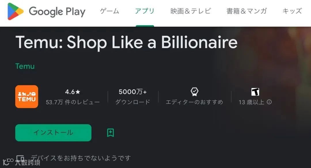 在Google Play上,Temu已经准备好了日语版的App下载,品牌slogan则沿用英语版的“Shop Like A Billionair”(像十亿富豪一样购物)。