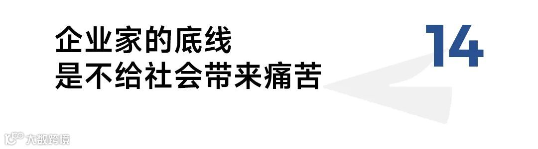 我觉得作为企业家,底线是尽量不要给这个社会带来痛苦,即便没有钱,也不能让员工跟着受累。为社会创造的不只是物质财富,更伟大的财富应该是精神财富。我们能为社会带来什么样的启迪?