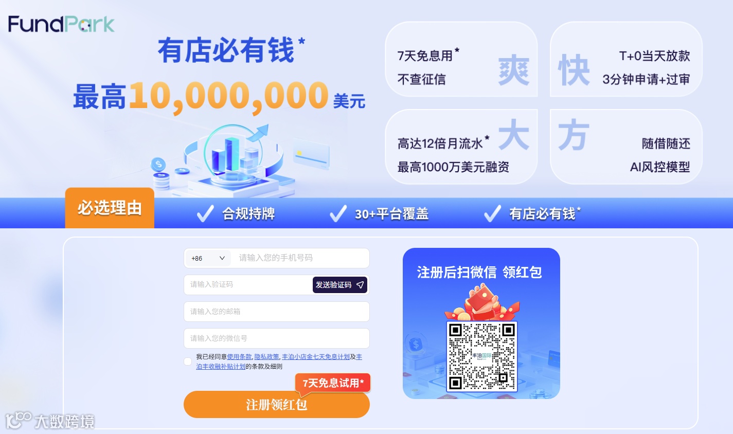 丰泊国际推出的 “丰收融” 极速跨境电商融资宝,为中小卖家提供低门槛融资服务,仅需 1 张身份证和 1 个真实店铺,就能获得 2000 美金起步的融资。