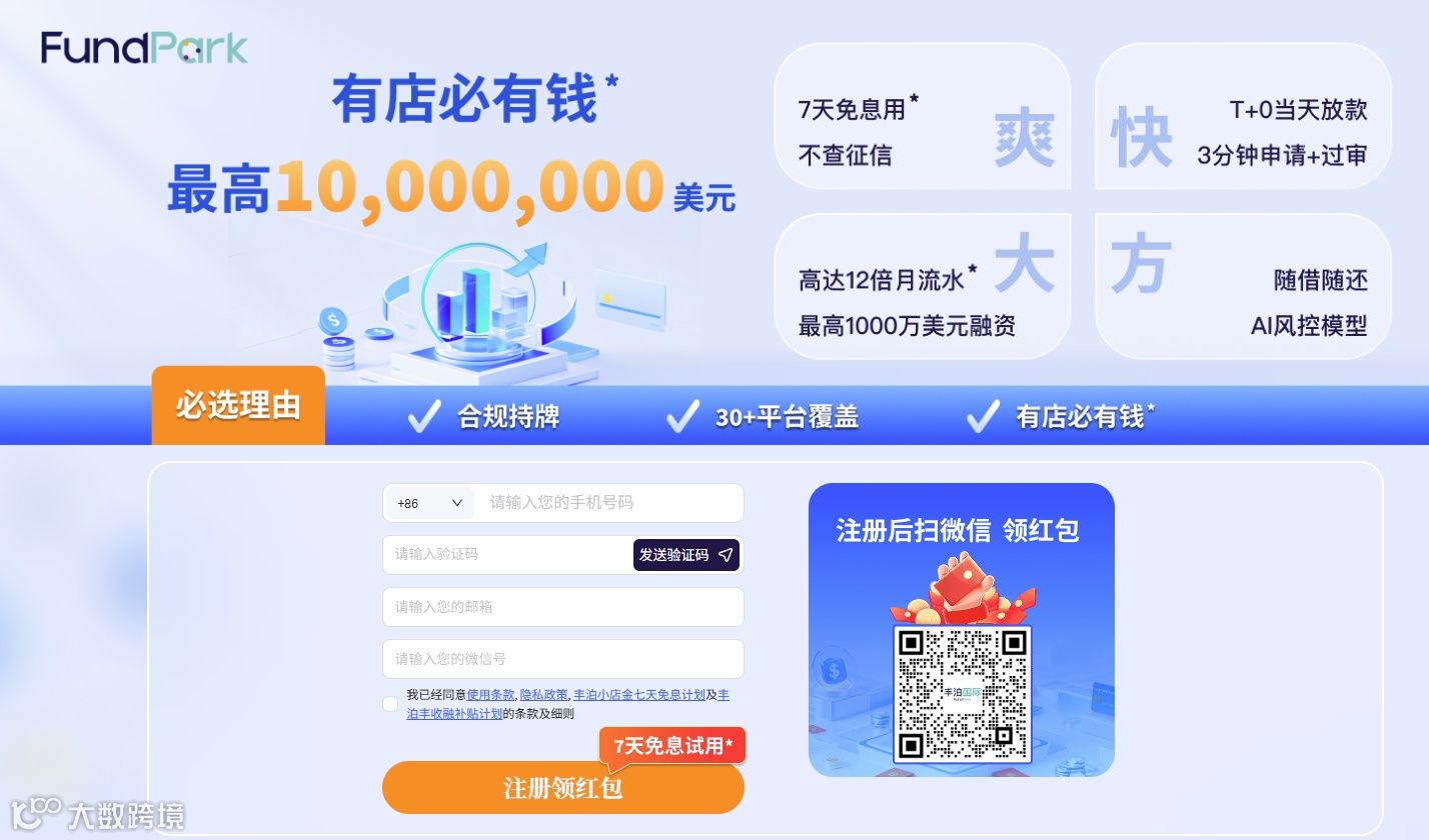 仅需一张身份证和一个真实店铺,卖家即可获得 2000 美元起步的资金支持。这意味着即使是一些规模较小、处于创业初期的跨境电商卖家,也能够轻松获得资金。