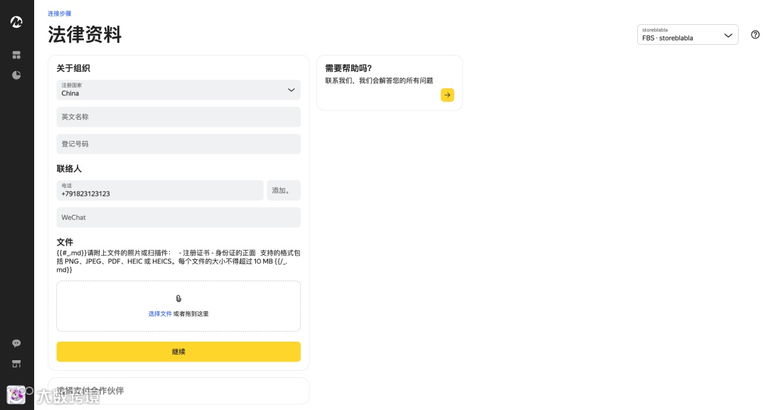 - 注意:公司名称需使用英文全称,禁止拼音。
