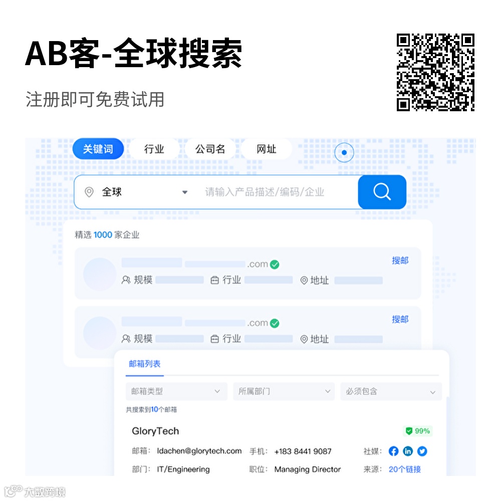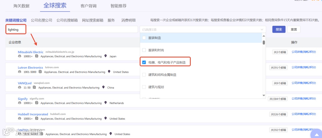 - 知道关键词:例如输入“lighting”,选择所属行业,即可一键获取该产品的所有相关企业及详细信息。