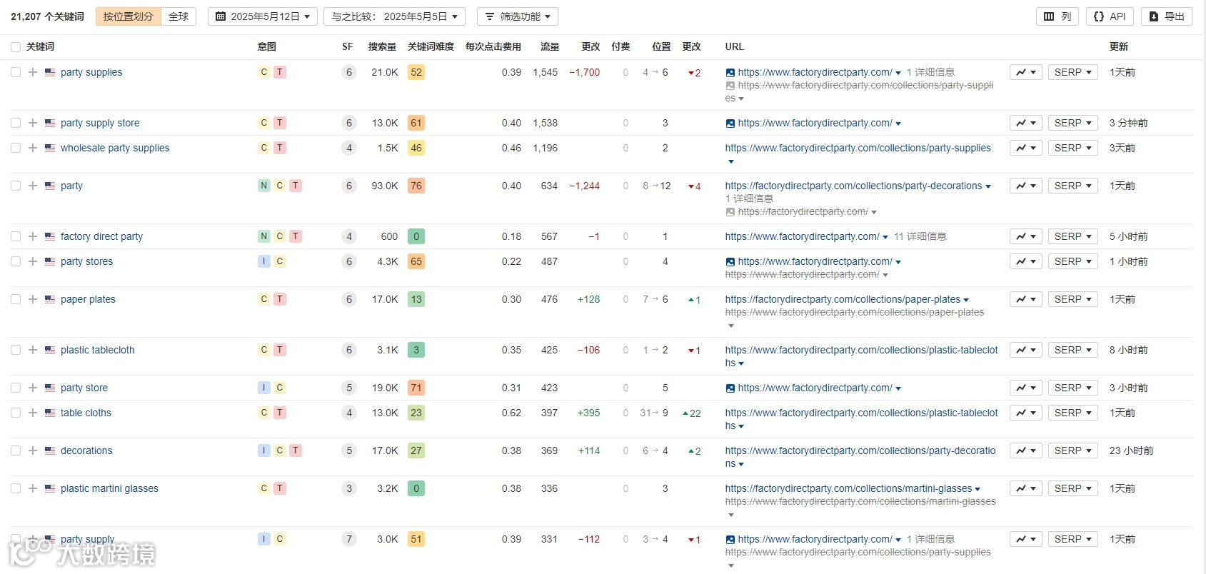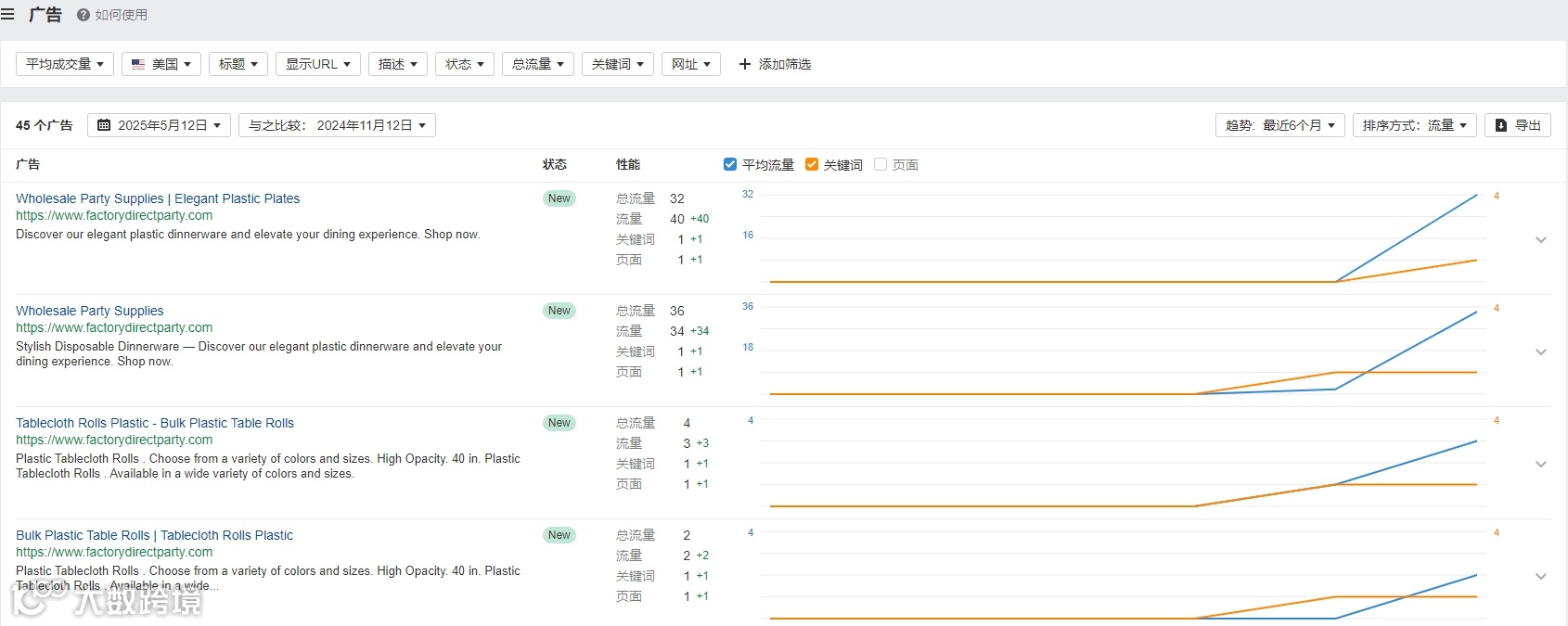 关键词:Factory Direct Party的自然搜索关键词,以通用、高频行业词为主,同时深耕长尾关键词与“品+类”关键词,这既有利于获取海量曝光与精准转化,也有利于资源的合理分配。