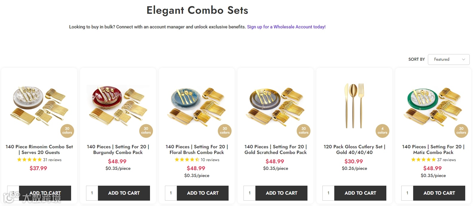为了满足消费者需求,Factory Direct Party推出多款组合套装,并在产品说明中,明确标出了服务人数、单件价格和配件构成,这能够极大地降低用户决策成本。此外,每件仅0.35美元这样的标注,还能强化性价比认知,在价格锚定下,促使消费者认为“买套装比单买更划算”。