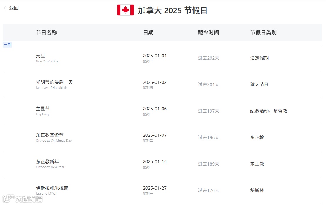 操作便捷: 界面清晰,可以按国家(比如加拿大)、日期范围或节日类型快速筛选,瞬间找到你需要的信息,省时省力。