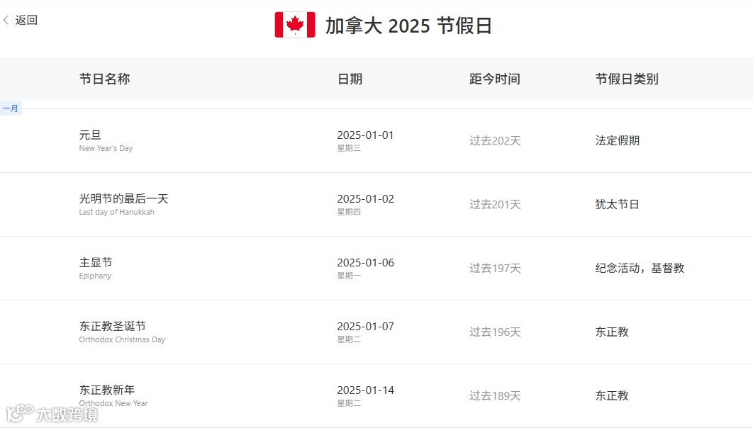 想要在加拿大节日消费浪潮中抢占先机,精准掌握时间节点是第一步。大数跨境全球节假日查询工具,正是为此而生。