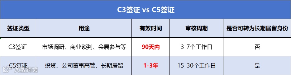 - 两类签证均不可转换,需根据商业目标选择。C5持有者每年需提交经营审计报告以维持签证效力