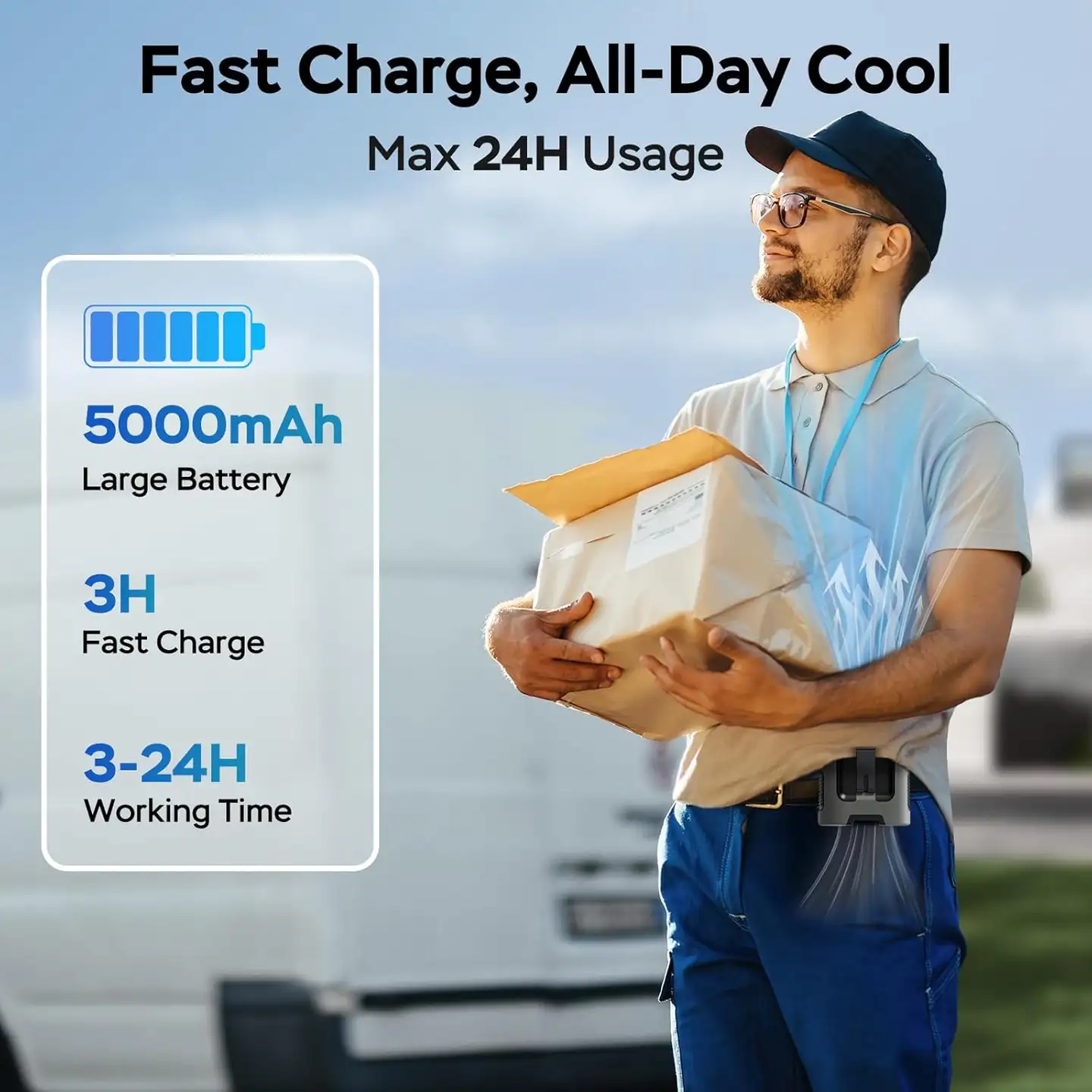 除此之外,AMACOOL还有针对更小众场景的便携腰挂式风扇,专门设计有皮带夹,为炎热夏季需要户外工作的人群(比如快递员、建筑工人)设计。