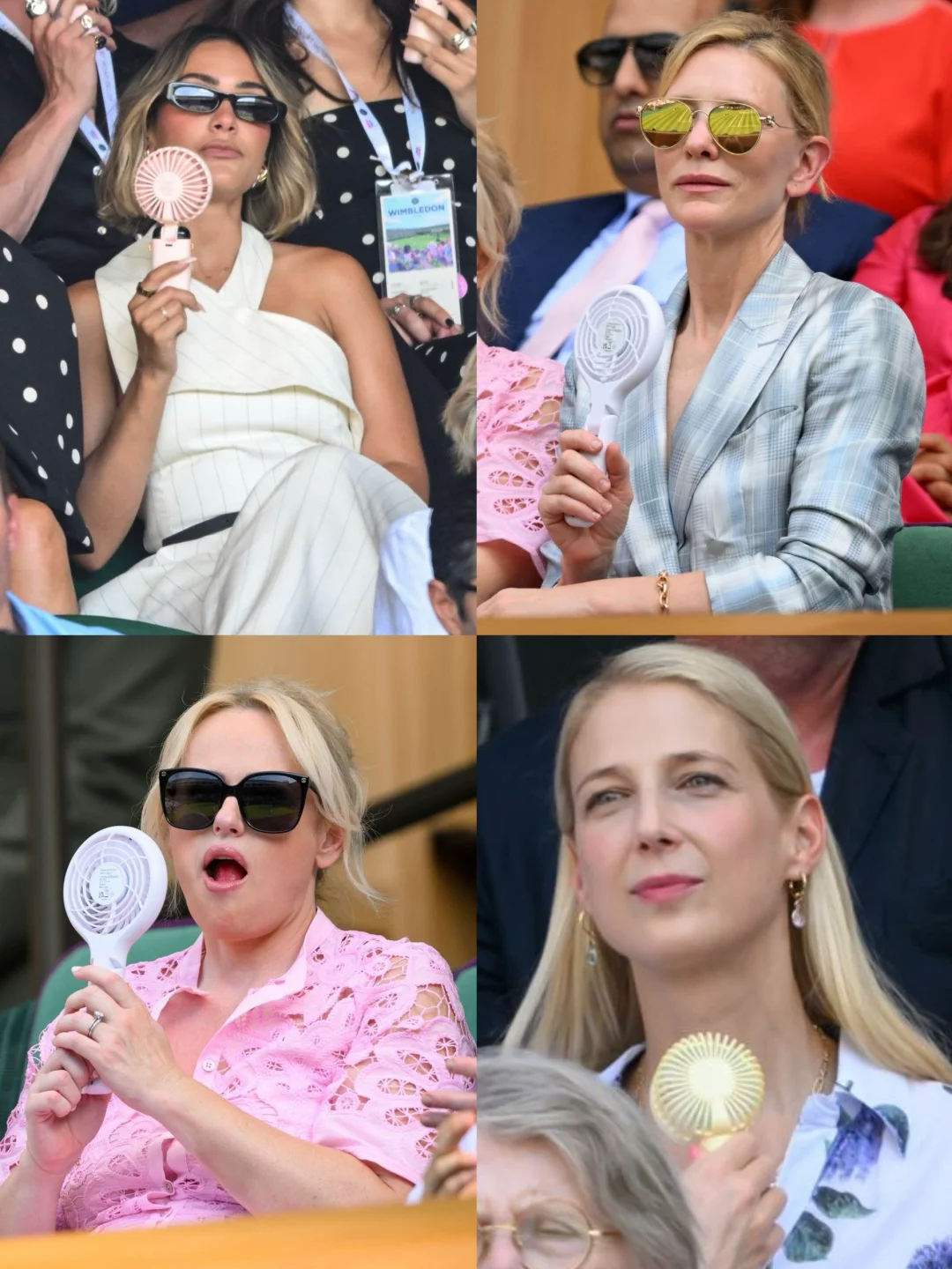 又因为温网传统是贵族优雅风格的着装要求,所以明星们大多穿着的都是浅淡颜色的服装,相应所使用的手持小风扇也都浅淡的色系,如白色、淡粉、淡黄等。