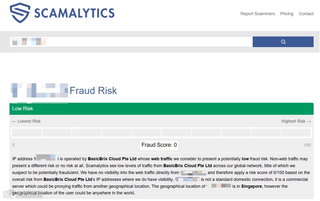 用途:检测代理IP是否存在历史滥用记录、欺诈行为、封禁历史等,对注册与养号稳定性有关键影响。