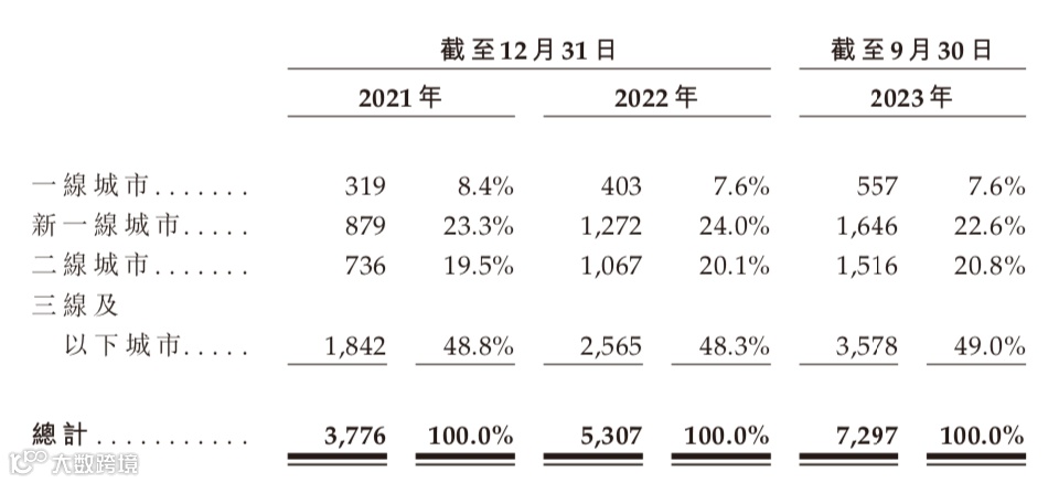 2023年前9个月,沪上阿姨的门店网络新店中有50.4%开设在三线及以下城市。