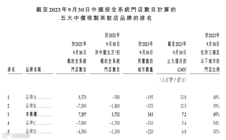 根据灼识咨询,截至2023年9月30日,按全系统门店数目计算,沪上阿姨于中国北方中价现制茶饮店品牌中排名第一;于中国中价现制茶饮店品牌中排名第三;于中国现制茶饮店行业排名第四。