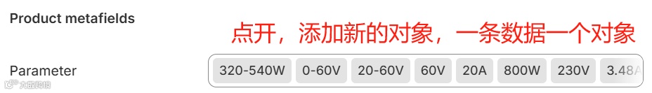 Content > Metaobjects 建立一个元对象,包括 2 个 Fields。