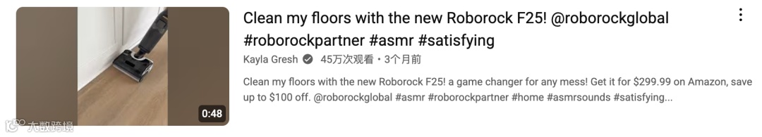 除此之外,Roborock还喜欢另辟蹊径,和一些生活类达人合作,因为如今的年轻人,更愿意在一条带点治愈气息的短视频里,轻轻松松爱上一个品牌。而带Roborock悄然走进北美用户生活的,是YouTube上拥有72万粉丝的头部生活类KOL:Kayla Gresh。