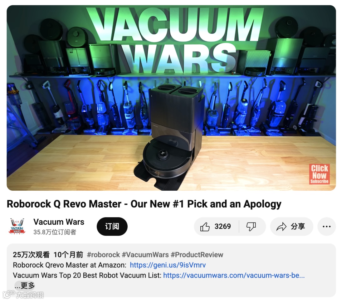 支撑起这一成绩的,除了产品本身的技术实力,还有一个极为关键的角色:海外垂类评测KOL的推动力。其中,YouTube频道Vacuum Wars的深度合作,就堪称一次内容与品牌双赢的经典范例。