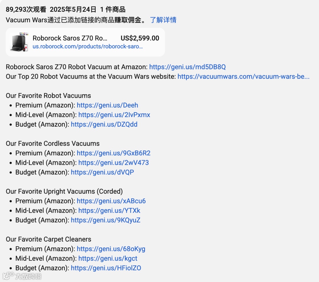 三、Vacuum Nerds :尾部垂类KOL,轻松“小成本大回报”