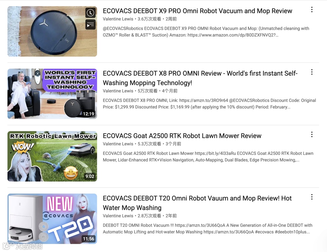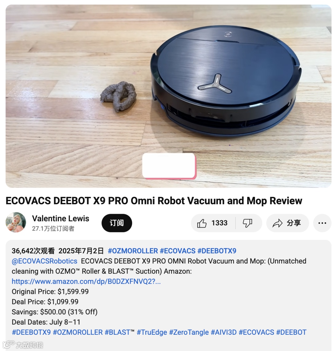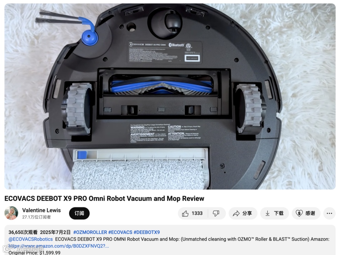 过去几年,Ecovacs在国内市场重新拥z不小份额,而在海外,它也凭借稳定产品力和精准市场定位,逐步走进更多用户视野。尤其是在欧美市场,不依靠浮夸广告,而是通过与垂类测评达人的深度合作,让产品实力“自己开口说话”。