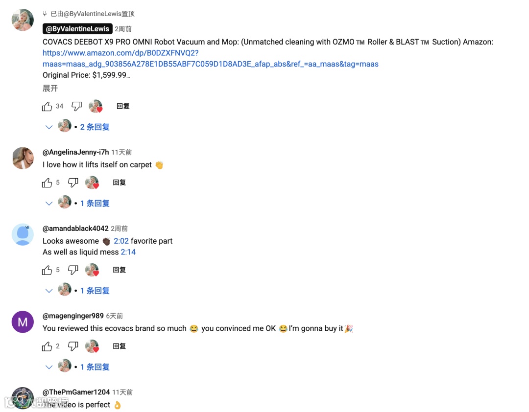 这条视频在发布后获得31万次播放与1565次点赞,评论区中涌现出大量真实用户反馈:“我就是用的X10,很实用”、“终于有博主讲点实在的,不是只看品牌和广告”,还有观众表示看完决定从某大牌转投Ecovacs。