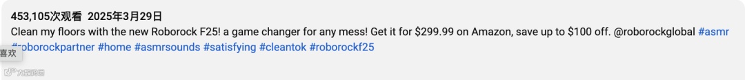 内容+电商闭环式传播,帮助Roborock有效提升了在美区的产品曝光与销量表现,也进一步巩固了其“中高端清洁电器第一品牌”的市场地位。