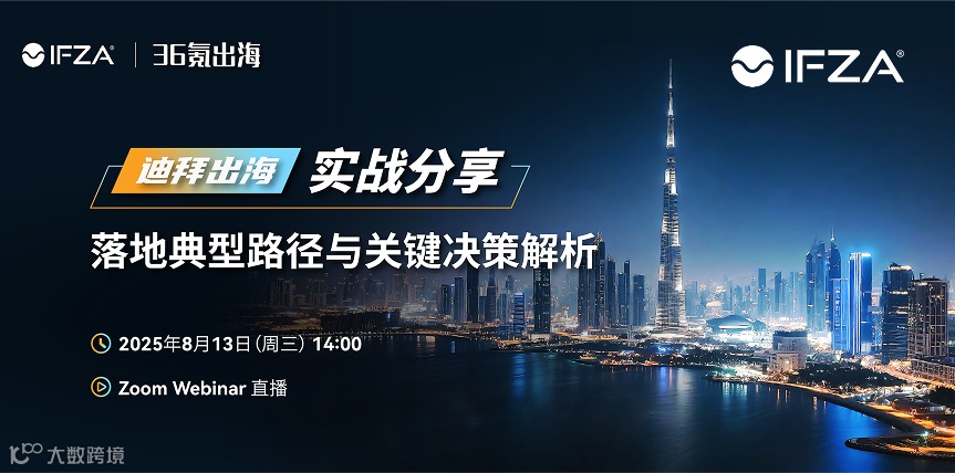 IFZA将联合36氪出海,于8月13日举办线上活动,由资深嘉宾带来真实案例分享,聚焦中国企业落地迪拜的典型路径,解析从决策到经营的关键环节。