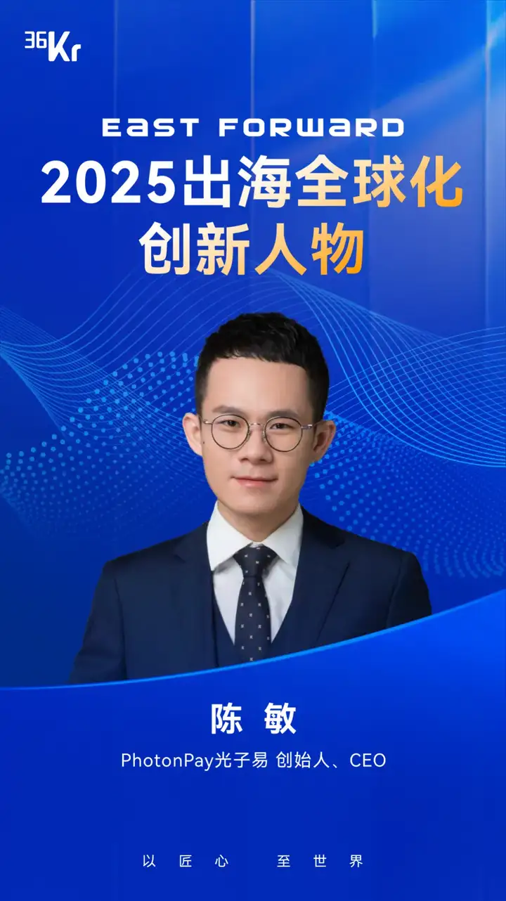 近日,36氪“East Forward 2025 出海全球化创新系列名册”重磅揭晓,PhotonPay光子易创始人、CEO陈敏作为唯一一位来自金融科技领域的获奖者荣登 “2025出海全球化创新人物”榜单。该奖项聚焦出海全球化进程中的关键创新者,表彰在全球化战略布局、产品创新与组织能力建设等方面展现突出表现的企业领导者。