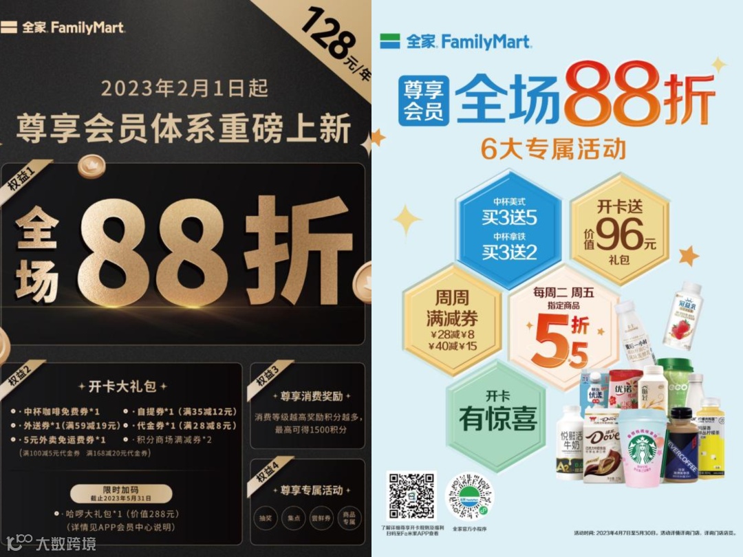 全家很早便开始会员模式探索,最开始的尝试可以追溯到2013年。去年2月份,全家将付费会员正式升级为“尊享会员”,成为国内便利店行业中第一个探索付费会员业务的头部品牌。