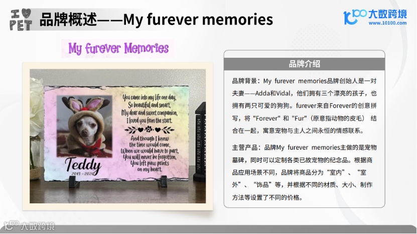 My Furever Memories:品牌以定制宠物墓碑和纪念品为主,提供个性化服务,如激光雕刻宠物照片和名字,满足宠物主人的情感寄托需求。其独立站年营收达500万美金,曾创下一小时卖出3.7万美元的纪录,展现出较强的商业盈利能力[k]