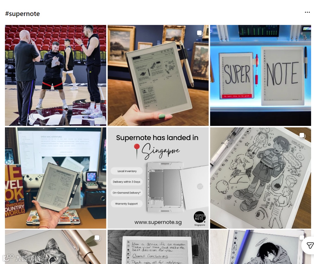 在Instagram,Supernote利用红人合作内容带动UGC内容生产,进一步丰富品牌话题社区。无论是篮球教练记录训练情况,还是插画家创作,亦或学生党做笔记,Supernote话题下集合的超万条UGC帖子展示了一个充满无限可能的受众画像,也成功借势口碑营销吸引更多新用户加入品牌阵营。