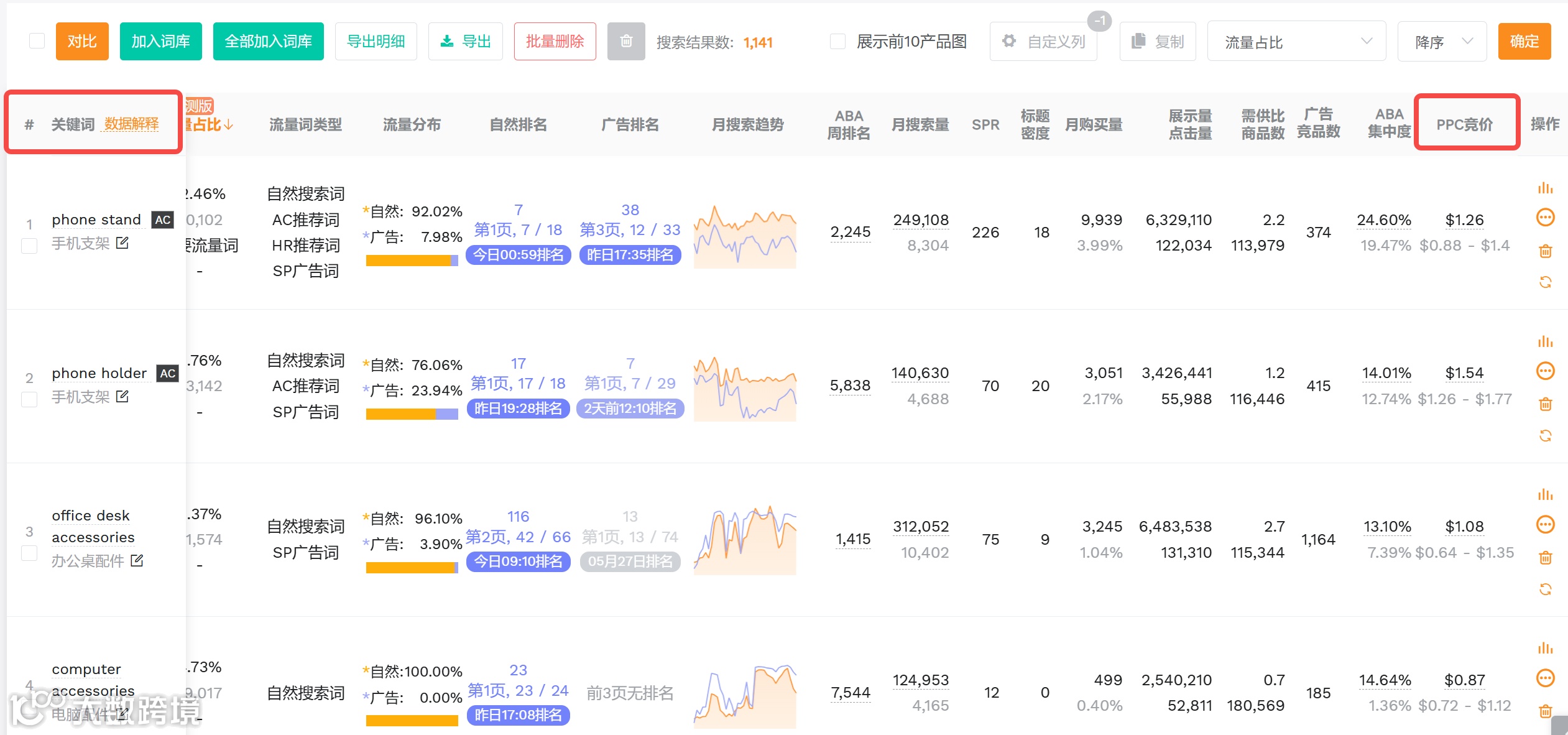 新类目探索: 全新类目可借助卖家精灵【关键词反查】功能,找出竞品的核心关键词,了解这些词的大致CPC范围。