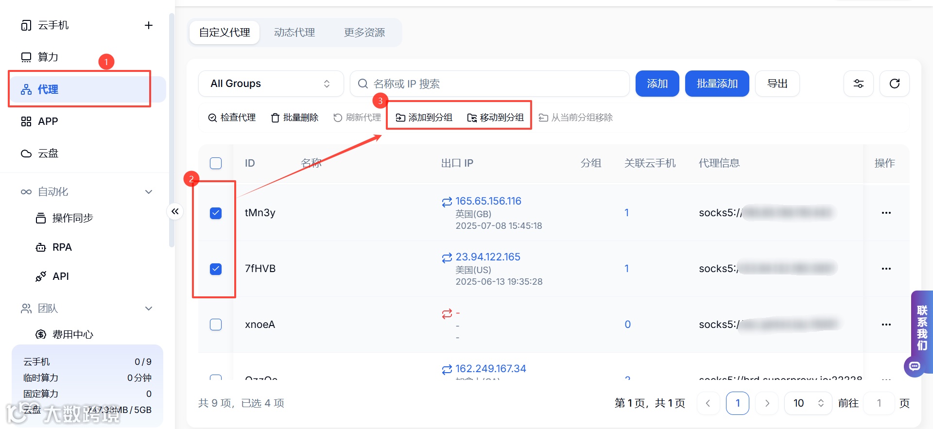 DuoPlus云手机新增代理分组功能,用户可以根据代理的用途或地域,将相关的代理添加到同一分组,方便查找和管理。