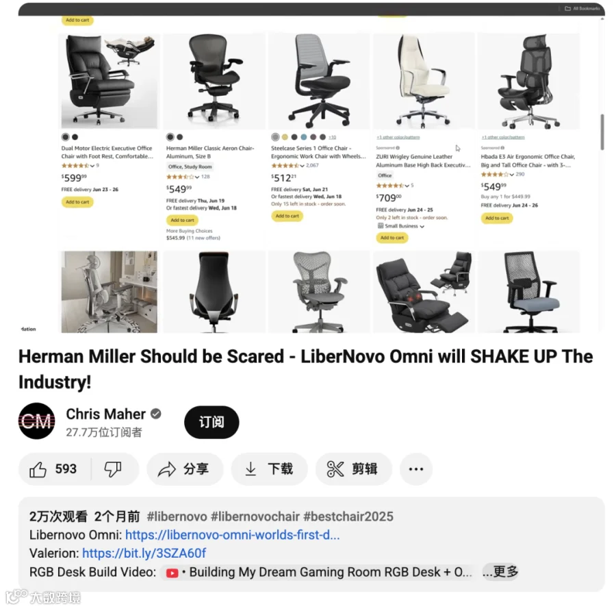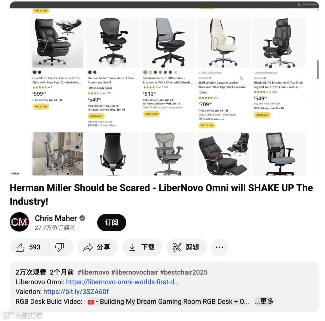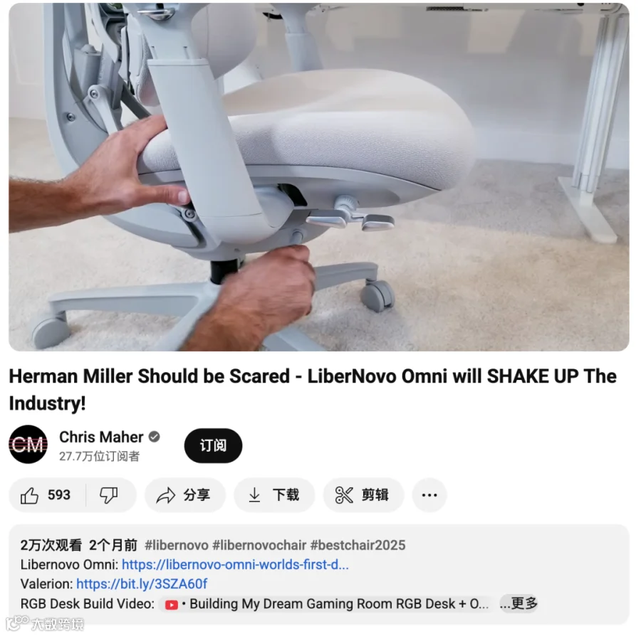 可以说,Chris Maher 不只是 LiberNovo 在海外的“带货达人”,更是其教育市场、建立品牌信任的合作伙伴。他通过专业且深入的内容,让消费者重新理解“为什么要投资人体工学”,也帮助品牌在与国际大牌的竞争中找到突破口。