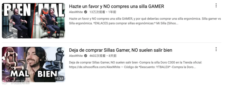 在一条播放量高达13万的视频中,AlexWhite 以一句反常规的开场吸引了观众:“Hazte un favor y NO compres una silla GAMER”(帮你一个忙,千万别买游戏椅)。