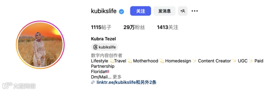 如何在竞争激烈的北美与欧洲市场中突围?答案之一就是与合适的本地生活方式达人合作。kubikslife(本名 Kubra Tezel)正是其中的典型代表。