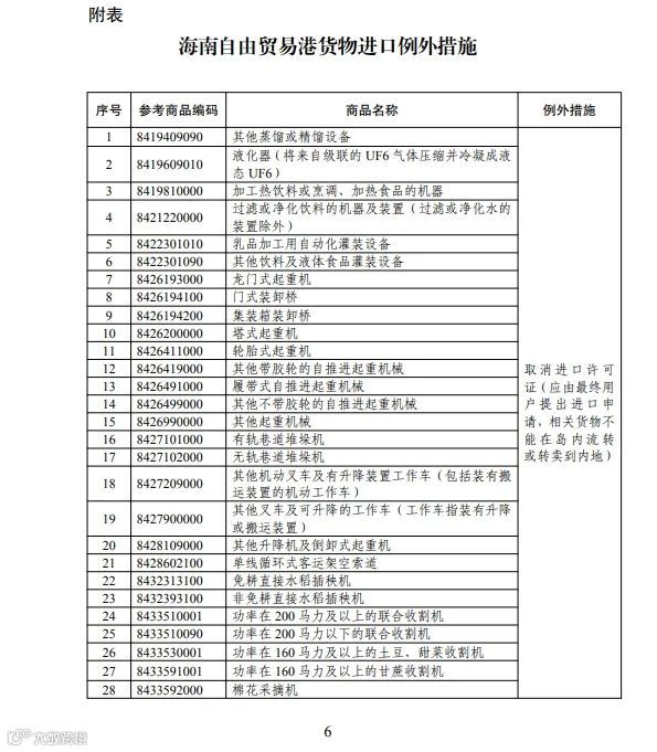 海南自由贸易港货物进口例外措施