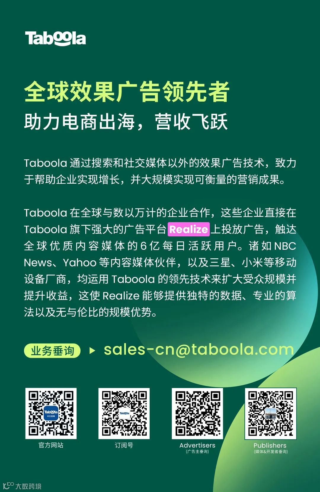 展会期间,我们将聚焦品牌出海效果提升,全方位展示 Taboola 旗下 Realize 效果广告平台的领先能力,为广大出海企业带来有价值的行业洞察与经验分享。