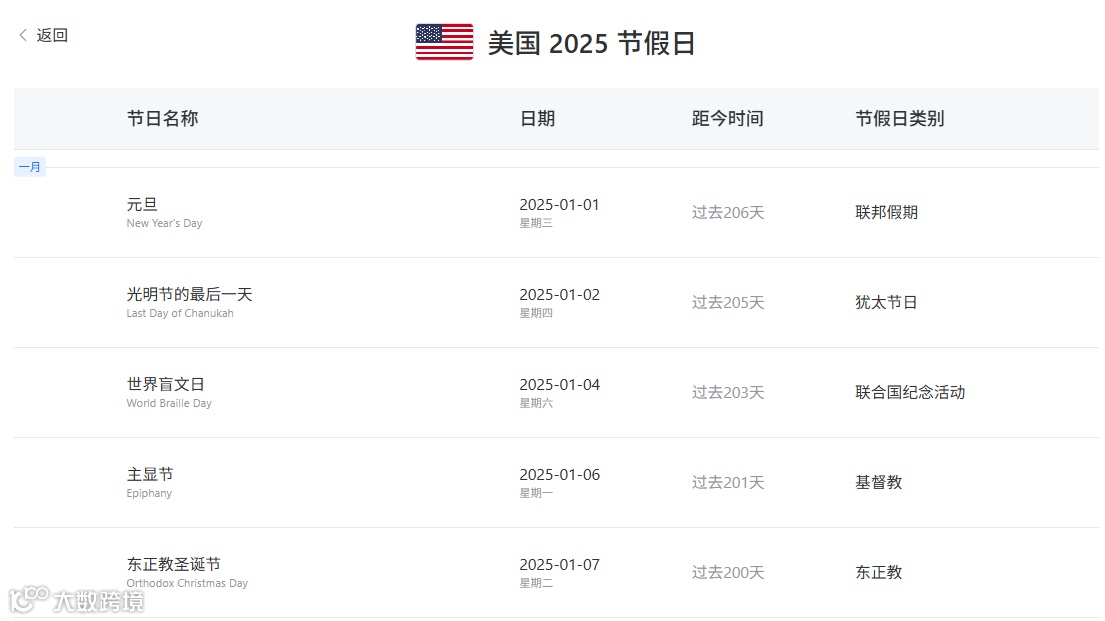 大数跨境世界各国/地区节假日查询工具