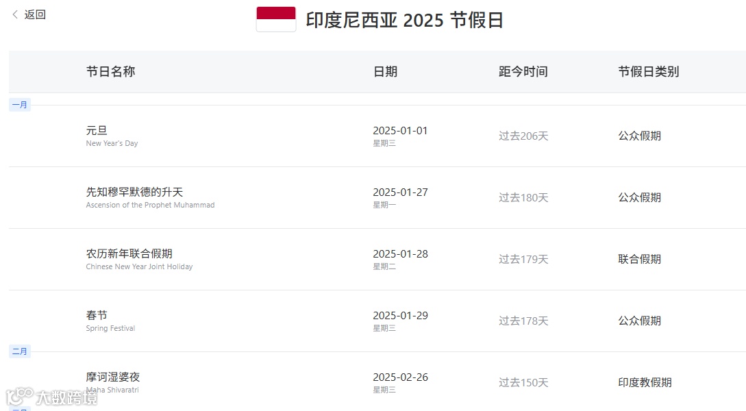 对于跨境电商卖家而言,印尼市场的重要性不言而喻。斋月与开斋节的巨大消费潜力早已被熟知,但印尼全年丰富的节庆日历中还隐藏着更多不容错过的商机。掌握这些关键节点,才能提前布局,抢占市场。大数跨境网站提供的世界各国/地区节假日查询工具,正是为跨境电商商家提供了一个高效、便捷的解决方案。