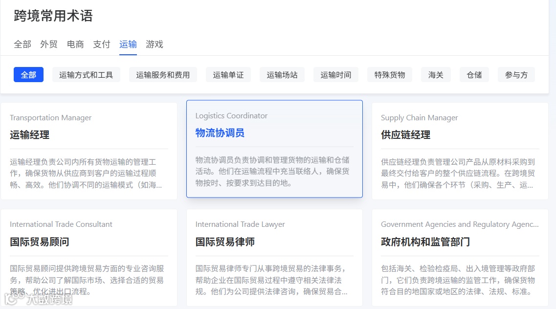 - 访问大数跨境网站,进入“跨境常用术语查询”页面。
