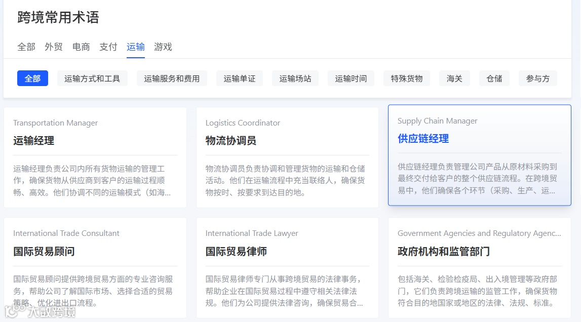 跨境物流环节多、参与方杂,术语体系庞大且常更新。手动搜索不仅耗时,信息也零散难辨真伪。大数跨境平台推出的“跨境常用术语查询工具”,正是为解决此痛点而生。