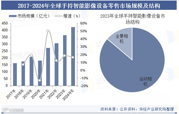 行业数据显示,2023年全球消费级无人机市场规模约348亿元,大疆占据约70%份额;手持智能影像设备市场规模约315亿元,其中运动相机占主导,全景相机占比仅25%,属相对小众赛道[k]。