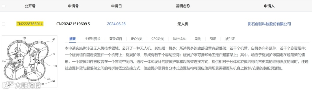 影石的反击策略在于技术创新与差异化体验[k]。其申请的多项无人机专利显示,包括一体式可拆卸旋翼护罩设计(专利号CN222876301U)和优化重量与气动阻力的机臂组件(专利号CN222808315U),有望提升结构强度与续航能力[k]。